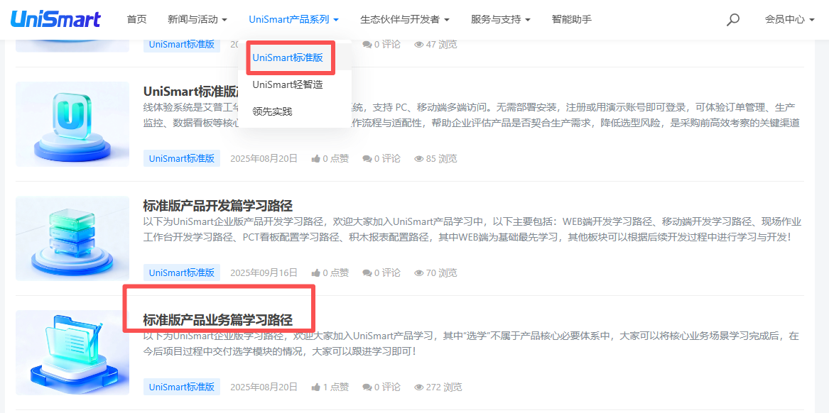 学习路径:UniSmart|学习成长中心——UniSmart系列产品——UniSmart标准版——标准版产品业务篇学习路径