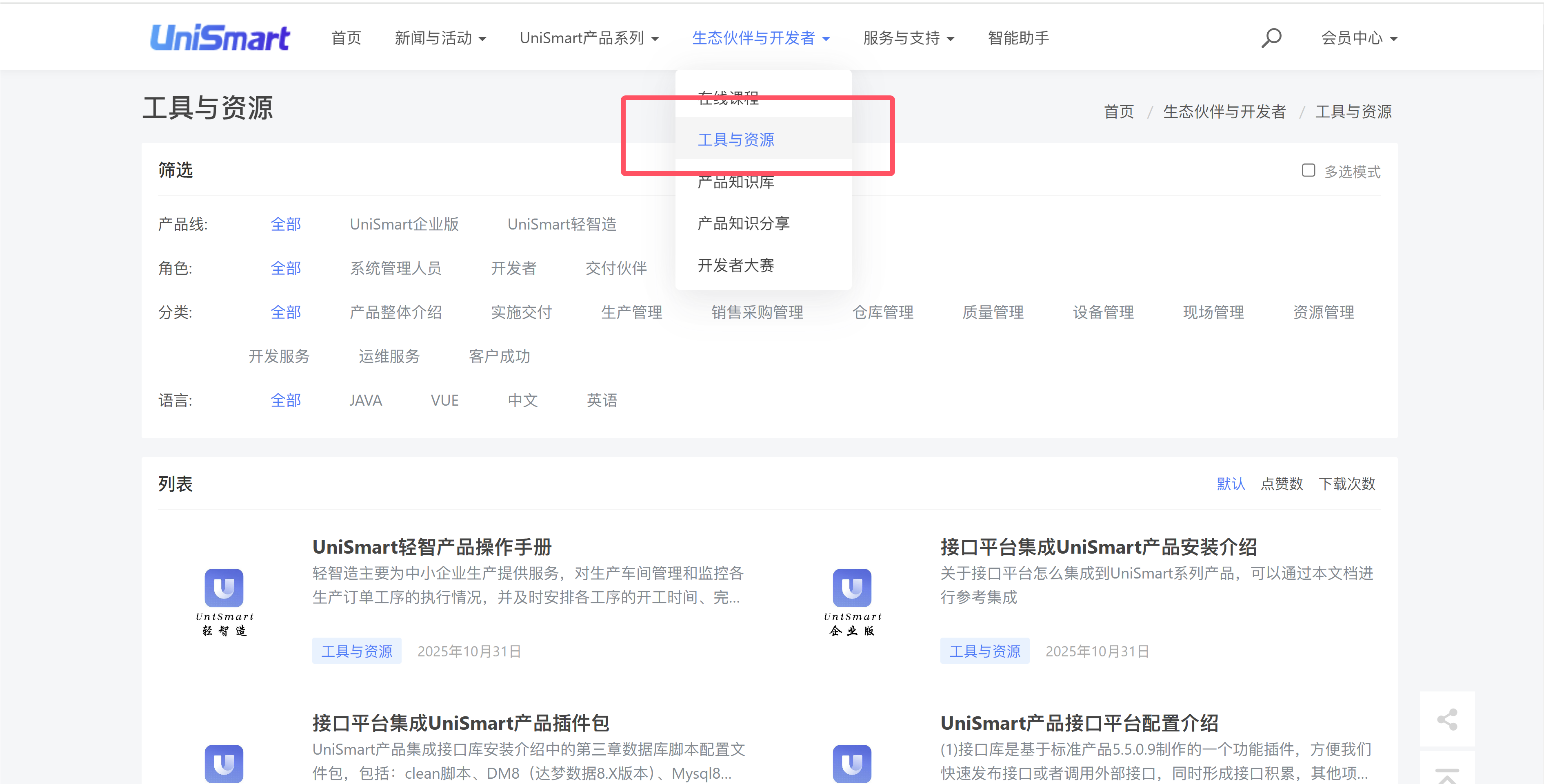 主要针对UniSmart涉及产品打印、产品手册、项目管理配套资料等插件包和文档进行资源下载管理。
