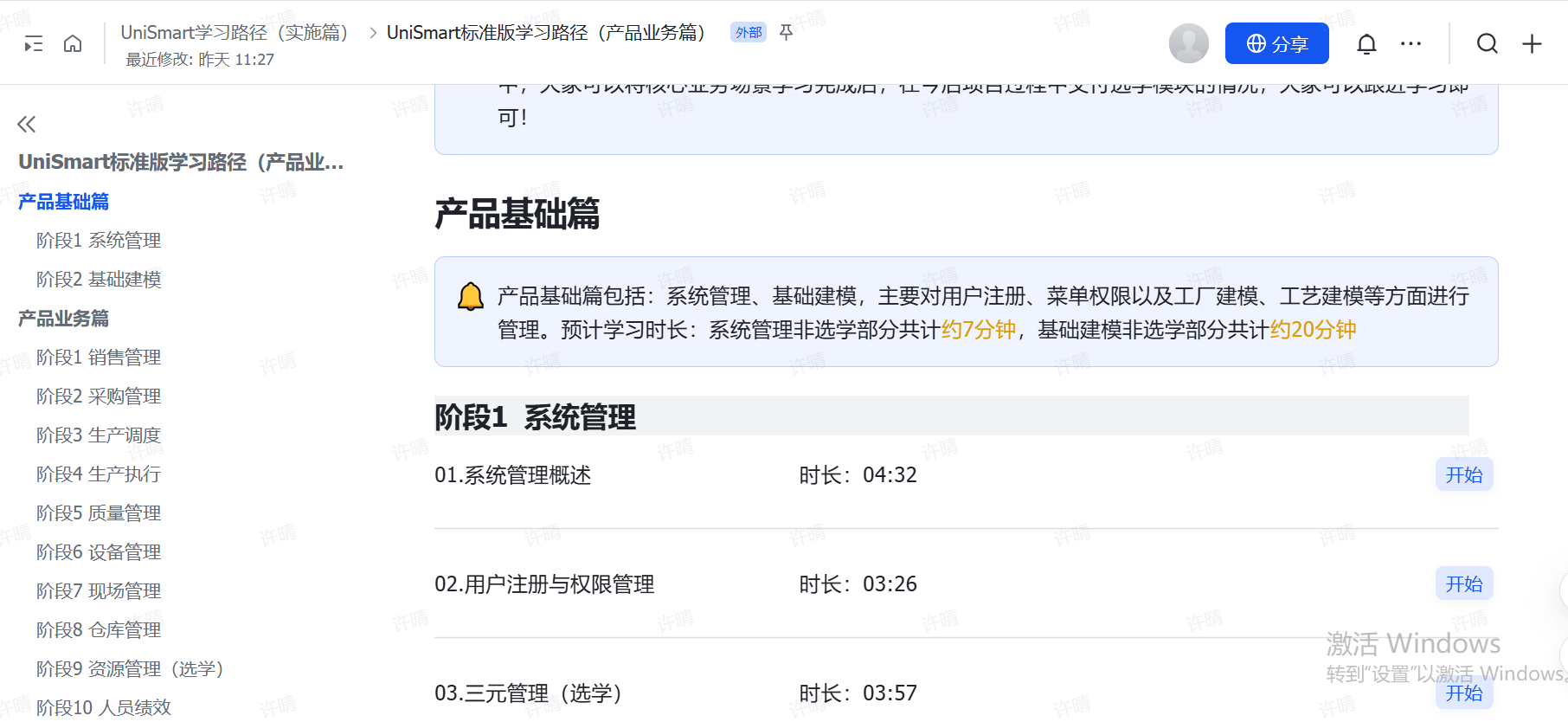 对于非会员伙伴,UniSmart MES产品的带产学习周期是15天,详细学习内容详见UniSmart标准版学习路径,请各位学员合理安排时间。
